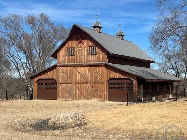 Beautifully crafted raised-ranch home on 4.37 acres, bordered by 256 acres of protected wetlands for exceptional privacy and views. Built in 2014, this property offers 6 bedrooms, 5.5 baths, a finished walk-out basement, and 4,753 sq ft of quality living space. High-speed fiber optic internet and rural water are already in place. The great room features a vaulted ceiling and custom wood-burning fireplace. The kitchen has brand-new quartz countertops, and the updated primary suite includes heated tile floors, a tiled shower with body jets, rain head, and frameless glass door. A basement bathroom also features heated flooring. Craftsman trim, solid doors, 9-ft ceilings, and a whole-home data network enhance the interior. The upper-level bonus room adds flexibility with new wood flooring, a kitchenette, full bath, and its own heating zone. Built with 2x6 exterior walls, spray-foam insulation, and a Lennox 4-zone HVAC system (23 SEER). A full concrete safe-room storm cellar provides peace of mind. Outdoor spaces include a covered front patio and a vaulted, covered rear patio with composite decking overlooking the fully fenced backyard. The newer custom barn offers 16-ft front sliders, dual rear sliders, dual 10-ft garage doors, and a fully insulated shop with concrete floors and tubing in place for future in-floor heat. Fencing and gates are ready for a couple of horses. Two large garden areas support sustainable living. Approximately 11 additional acres to the west are available. A rare opportunity for private, high-quality acreage living.